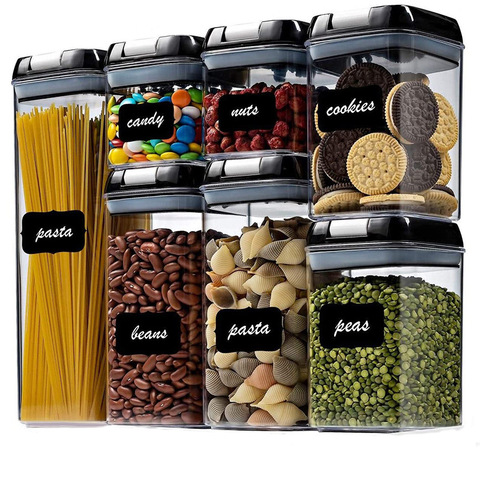 7 Pack Airtight Food Storage Containers Sealed Jar Household Plastic Sealed Tank Grain Vacuum Seal Jar for Kitchen